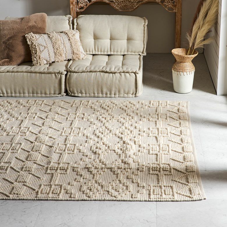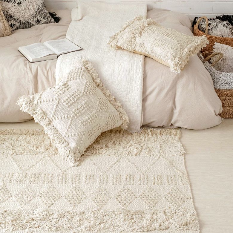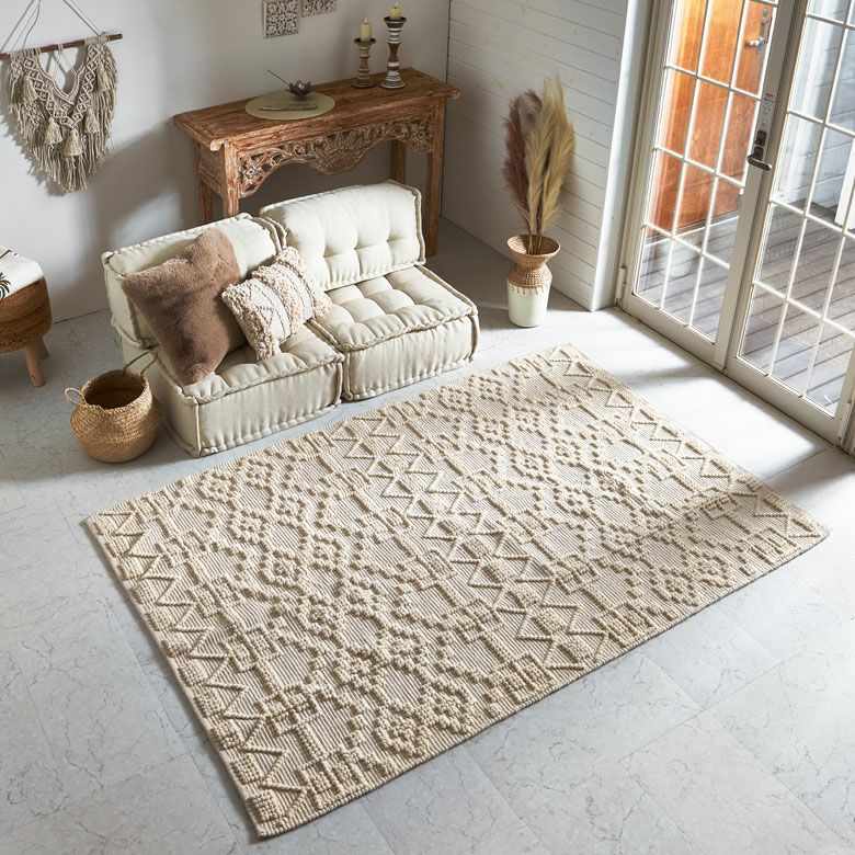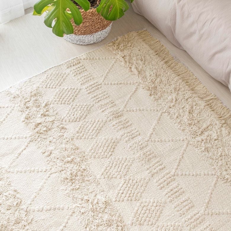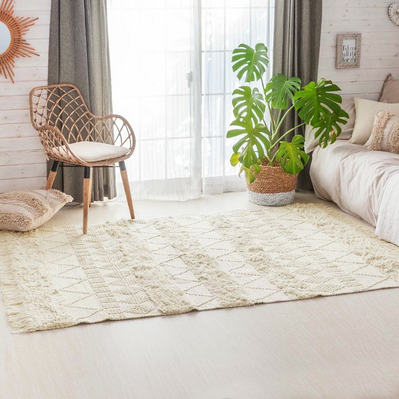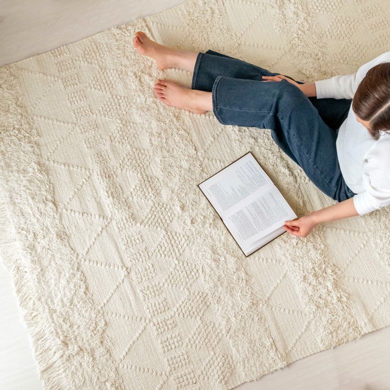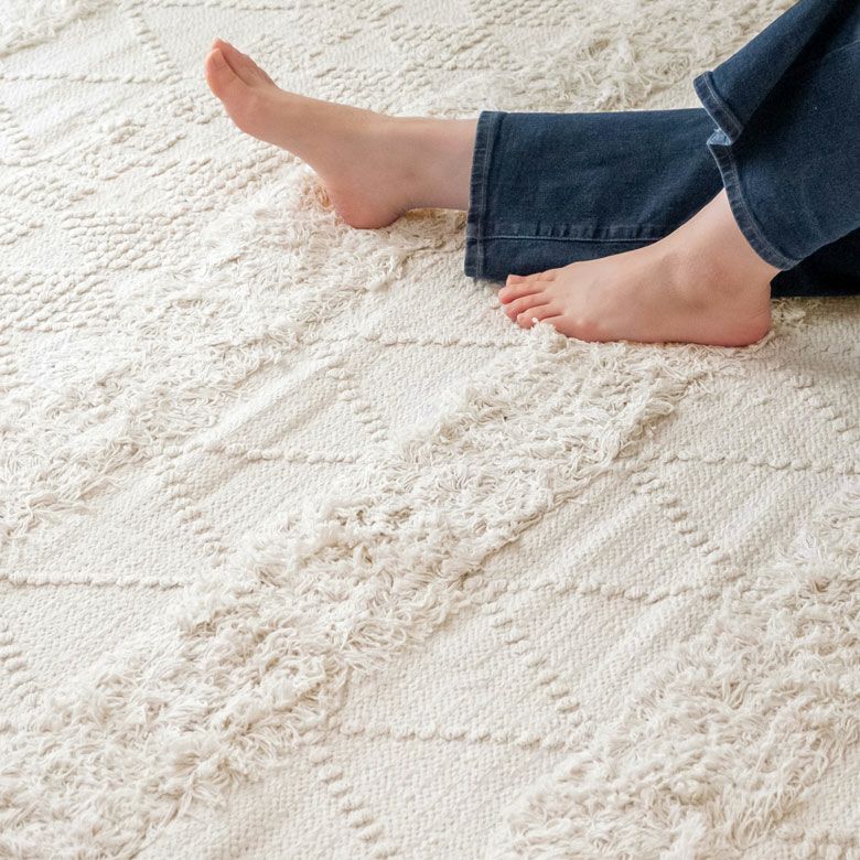 旬のお部屋づくりによく合うインドコットン製のラグ。
