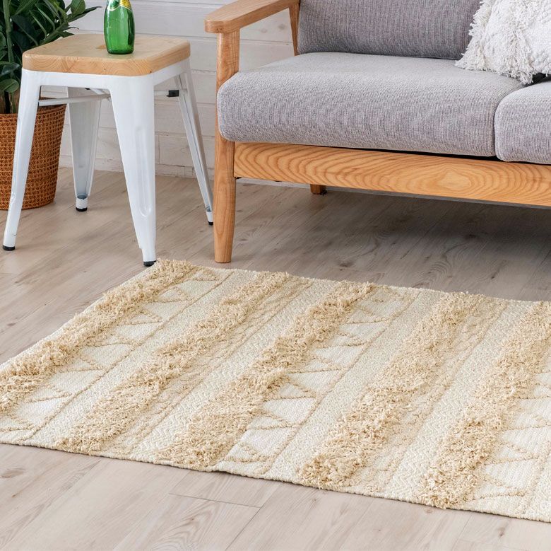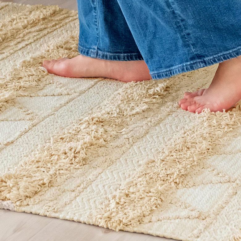 ぽこぽことした編み目が可愛らしい、ボヘミアン柄ラグ。