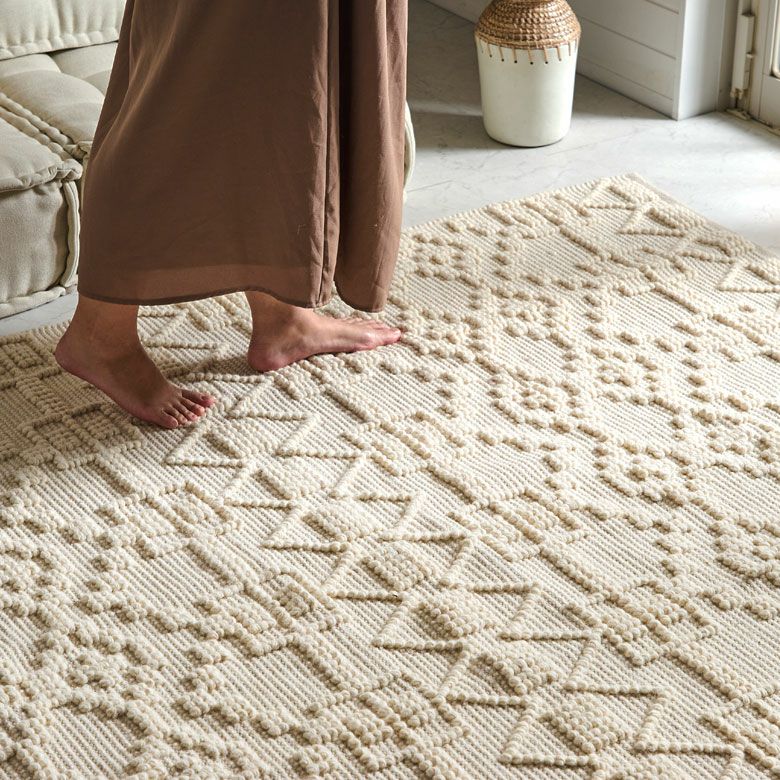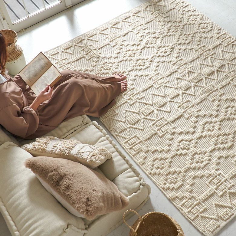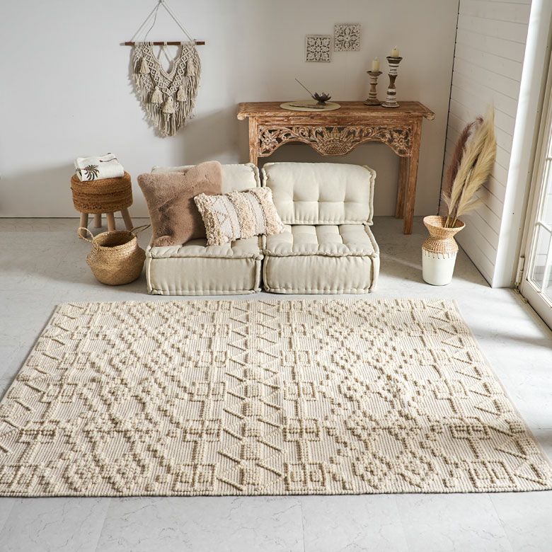 立体感のある編み目でお部屋に表情を付けてくれる、コットンとウールの混合ラグ。