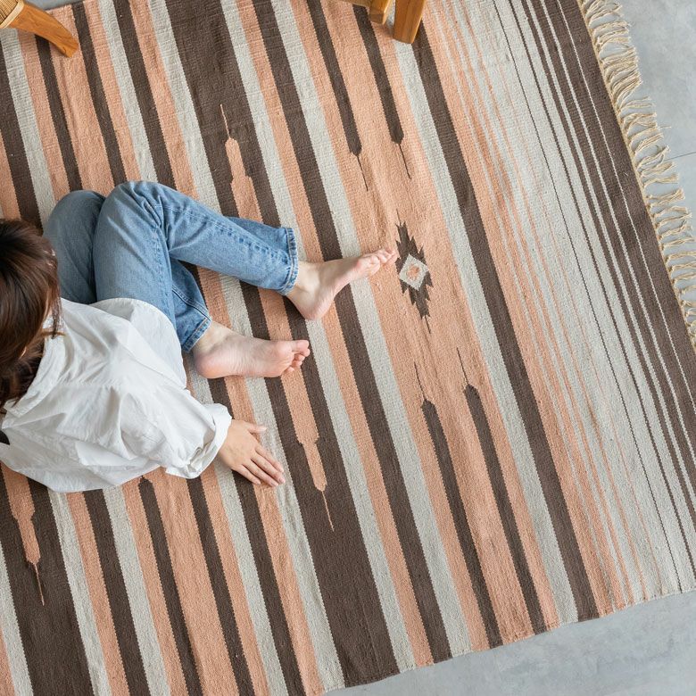 キリム インド綿 ネイティブ ラグ カーペット マット  民族 オルテガ