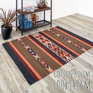 人気のコットンキリムに新サイズが登場。 100x140cmのちっちゃめラグです。 一人暮らしの方にぴったりなサイズで、夏にも快適なラグ。 シェルフの前などに置いて、ちょこっとアクセント使いにもおすすめです。