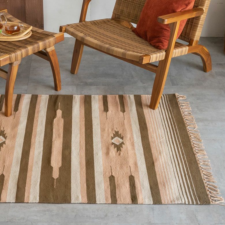 素朴でざっくりと織られたやさしい風合いのデザインラグ。