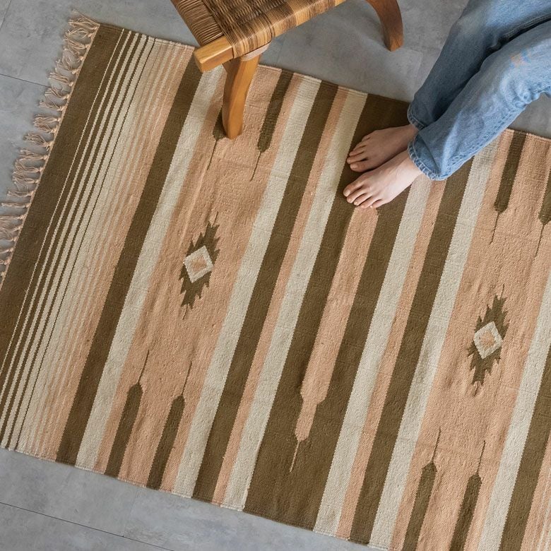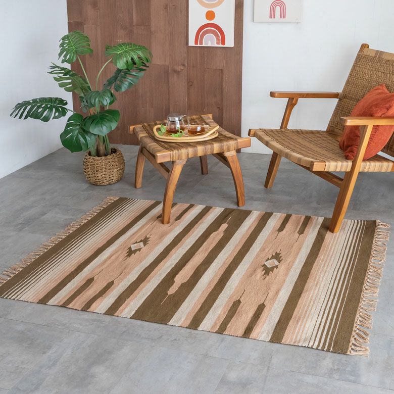 大注目のキリム調ラグ☆お部屋の主役インテリアになるエスニックラグ キリムラグ コットン 100×140cm Iタイプ コットンラグ マット キリム インド綿 オルテガ エスニック ネイティブ 民族 カーペット ラグマット 絨毯 じゅうたん アジアンラグ アジアン らぐ おしゃれ アジアン雑貨 男前 オシャレ インテリア [31950]