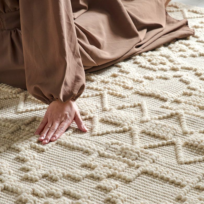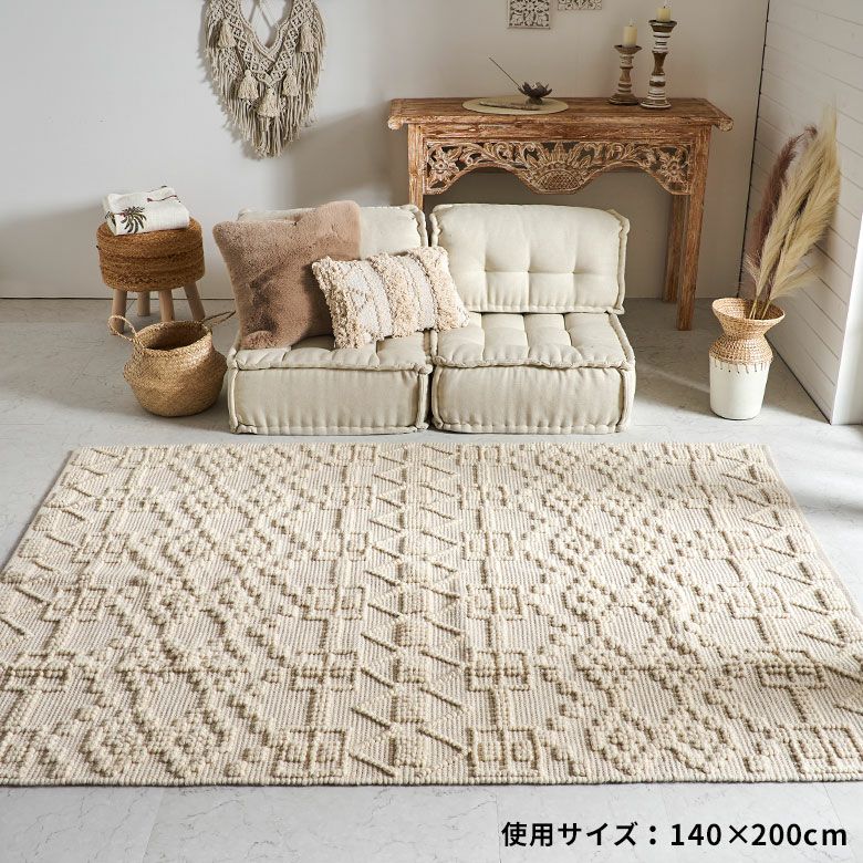 インド製 センターラグ リビングラグ リビング ダイビング 寝室 ベッドルーム  ハンドメイド 手仕事 rug carpet モロカン 引っ越し 模様替え 一人暮らし ワンルーム ギフト プレゼント ラグ ラグマット コットン ウール 100×140cm 約 1畳 アイボリー オールシーズン 春 夏 秋 冬 吸湿 速乾 保温 絨毯 じゅうたん マット 敷物 140cm 100×140 幅140 おしゃれ 北欧 BOHO ボーホー モノトーン モロッカン リゾート エスニック オリエンタル アジアン [34595]