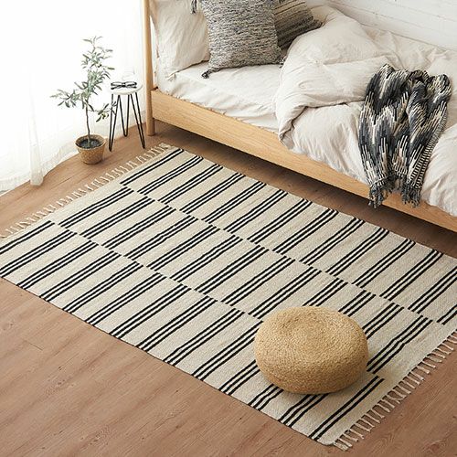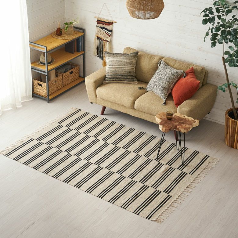 綿100%の手織りラグ。