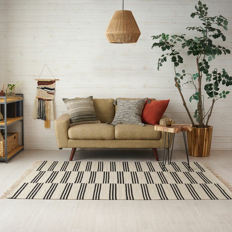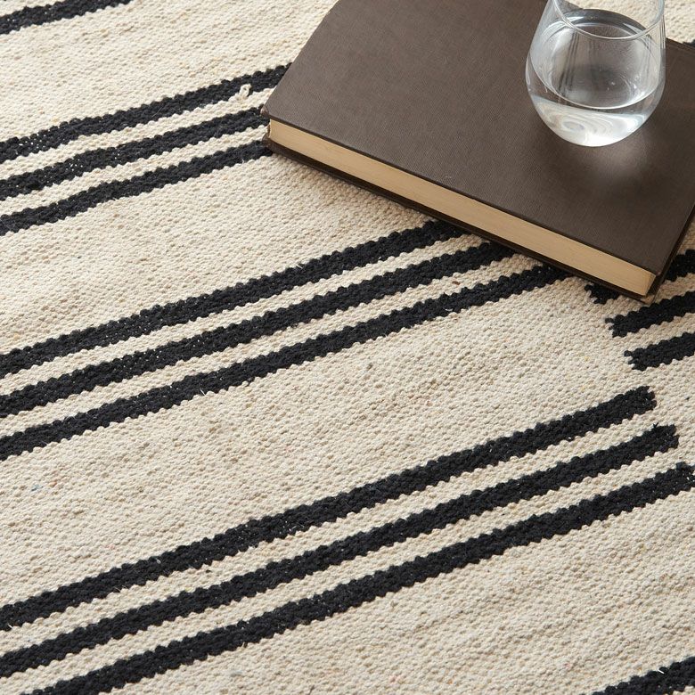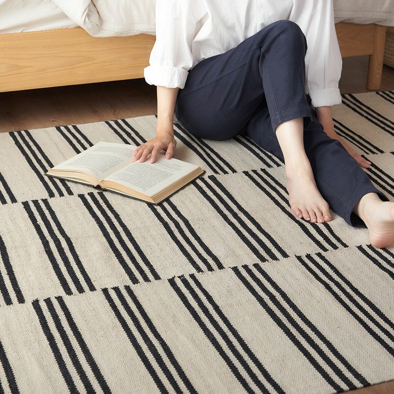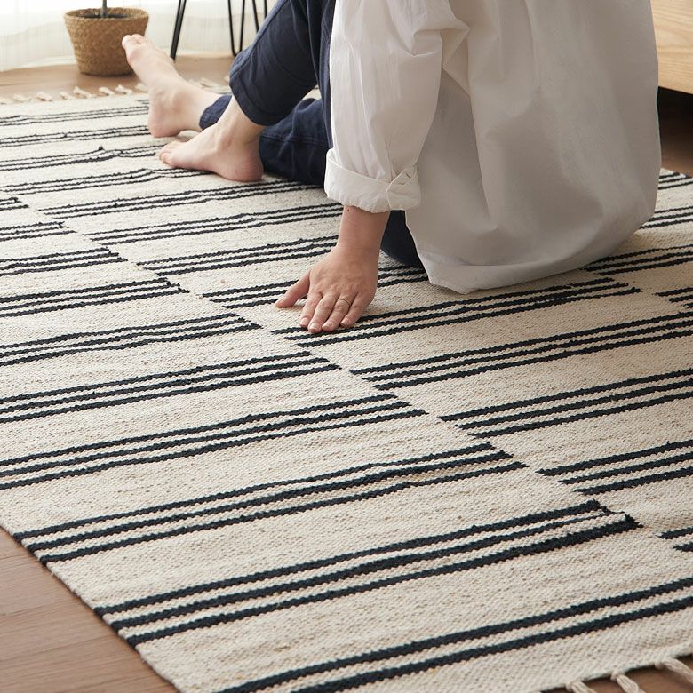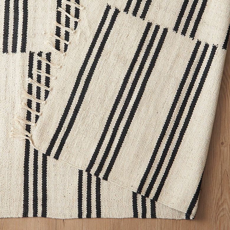 モノトーンで落ち着いた印象の、ナチュラルカラーのストライプ柄コットンラグ。
