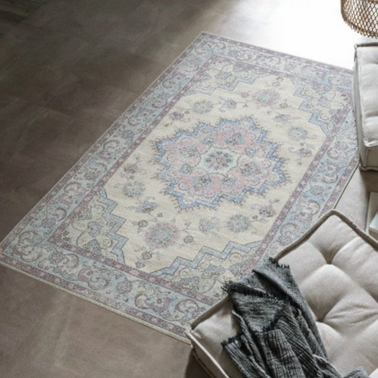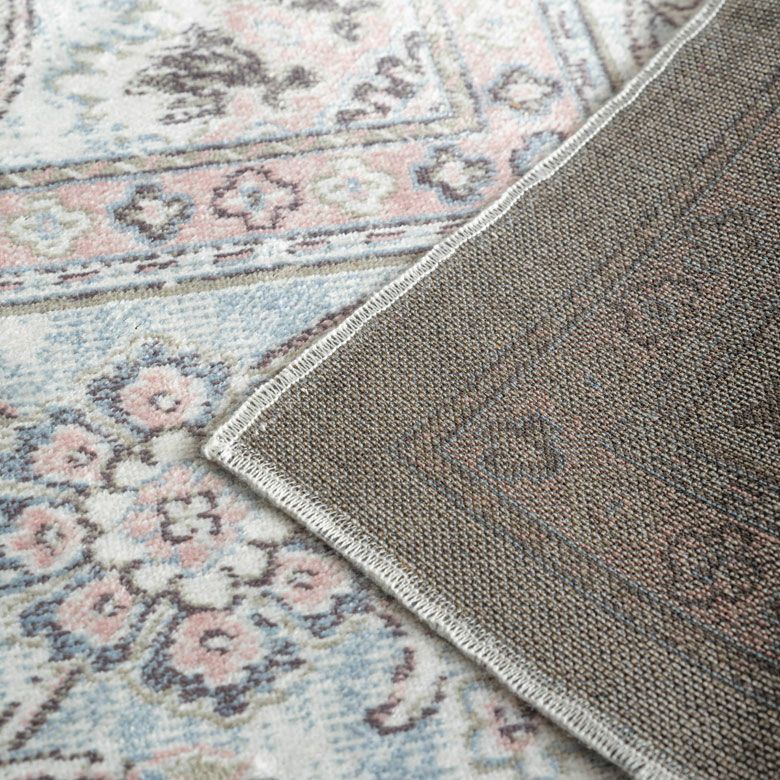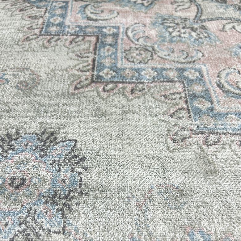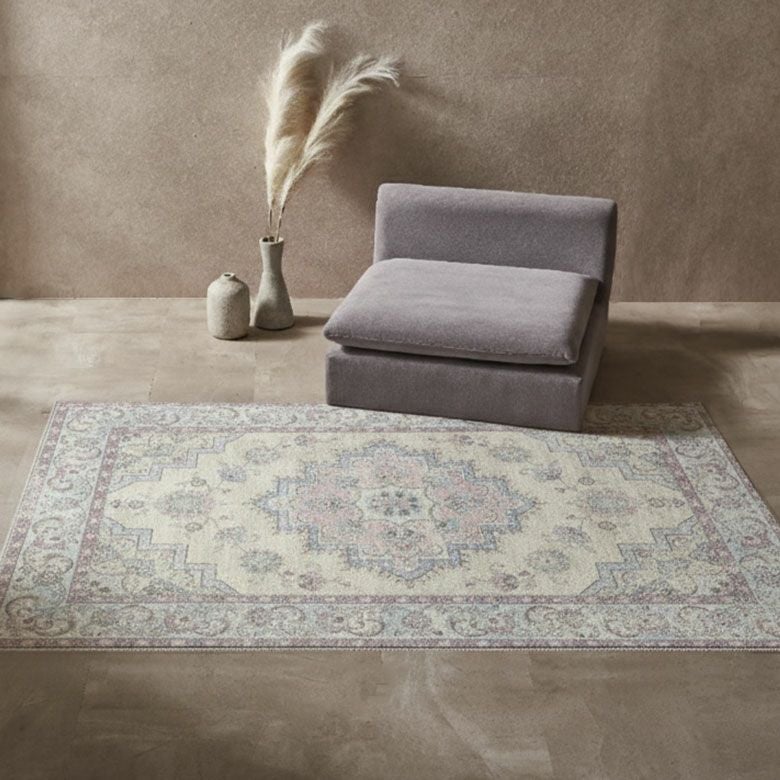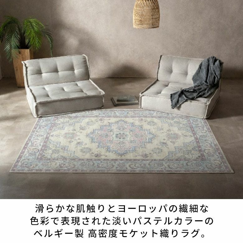 ヨーロッパらしい洗練されたデザインと美しい発色が魅力のRAGOLLEモケット織りラグ。ベルギー伝統の技術で丁寧に織り上げ、445,250ノットの高密度仕上げにより、繊細な柄と高い耐久性を実現しています。色合いはアイボリーを基調に、淡いブルーとピンクで繊細にモチーフを描いた上品で柔らかなトーン。中心の大きなメダリオンと細部にまであしらわれたフラワーモチーフ、そして優美に重なり合う色彩がクラシックで格式高い印象を演出。
