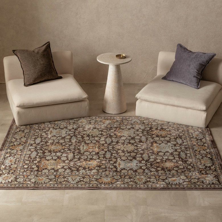 ソファ前に敷けば、上品なトーンと奥行きのある織り模様が光の当たり方で表情を変え、シックで落ち着いたくつろぎ空間を演出します。