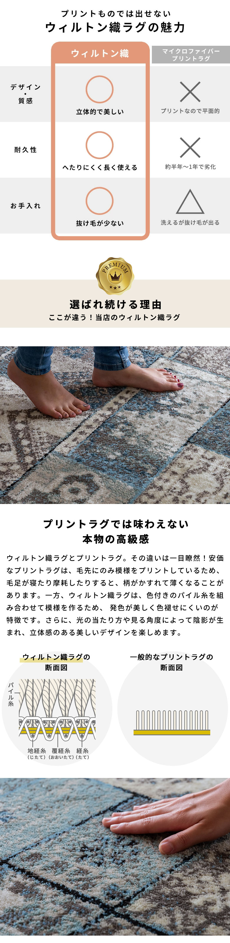 ヨーロッパでは土足で使われることが多く、ウィルトン織ラグはその高い耐久性で