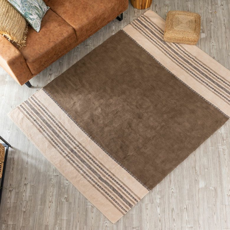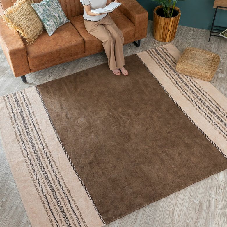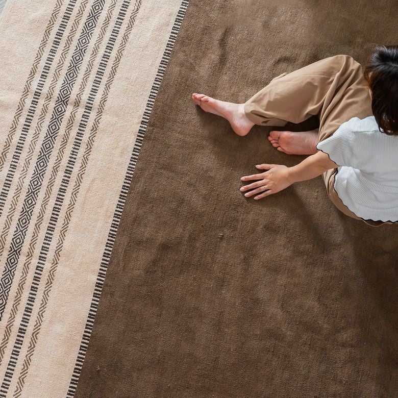 素朴でざっくりと織られたやさしい風合いのデザインラグ。