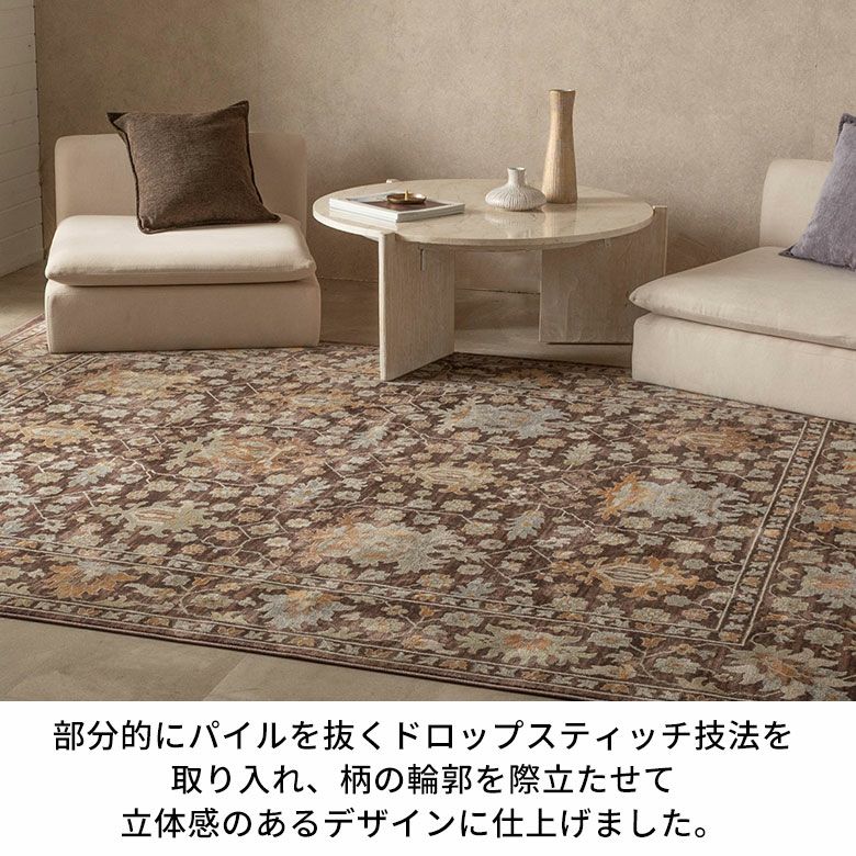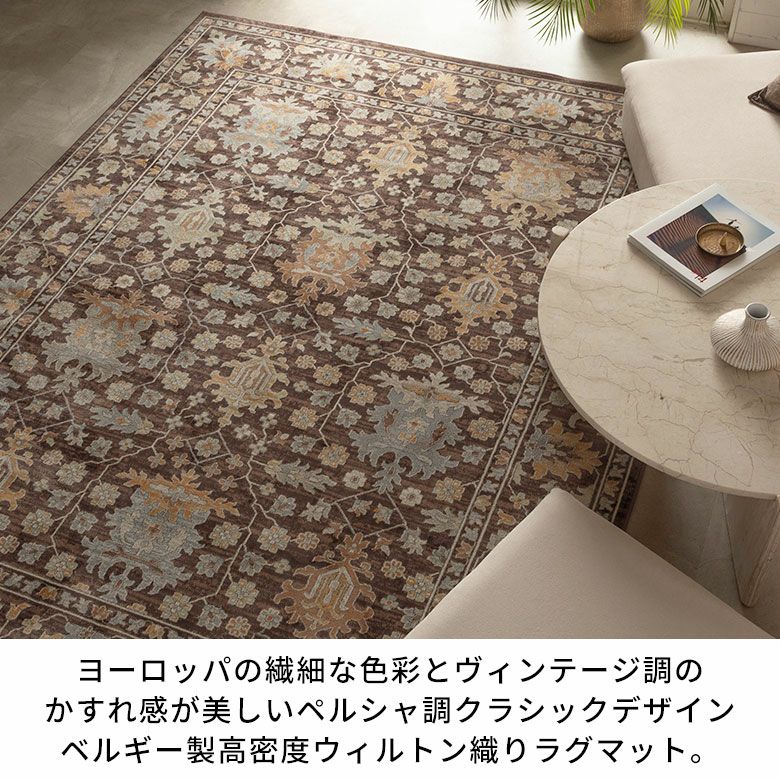 ベルギーラグは、中世から続く織物文化と最新の機械織技術が融合した上質なラグです。ベルギーならではの繊細な柄表現とニュアンスのある美しいカラーが生み出す上品なデザインが魅力。