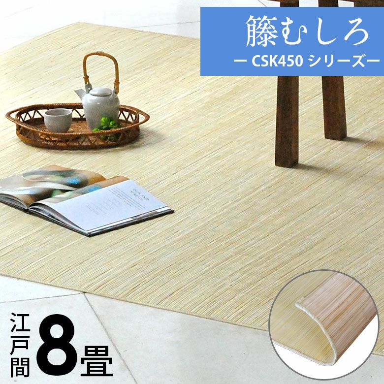籐むしろ(ラタンカーペット)は厳選された籐だけを使い、すべて職人による手作業で仕上げられた、天然素材100%ナチュラル 志向のカーペットです。 お手入れはとっても簡単で籐の表面は汚れをはじくので掃除機で十分。使っていくうちにツヤが増し 美しいアメ色へと変わっていきます。 和室・洋室を問わず、インテリアにプラスするだけでアジアンスタイルを手軽に楽しむ ことができます。懐かしいのに新鮮で使うほどに味わいを増す籐。 こちらの【PR800シリーズ】はラタン(籐)をさらして、色を 均一に揃えたタイプ。裏地には不織布とコットン布を張り付けています。