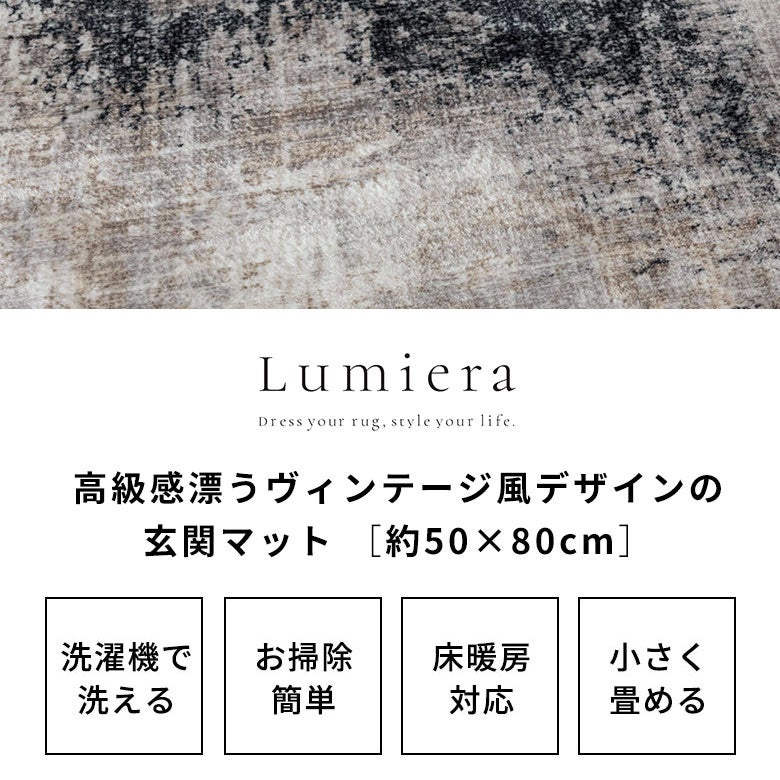 ヴィンテージラグの風合いを“手軽に・清潔に”楽しめるラグマット「Lumiera ルミエラ」シリーズ。繊細な模様と深みのある色合いを転写プリントでリアルに再現し、本物のような重厚感と高級感を実現しました。