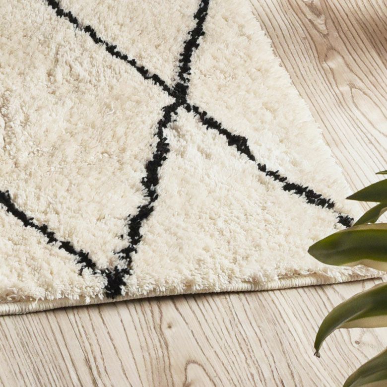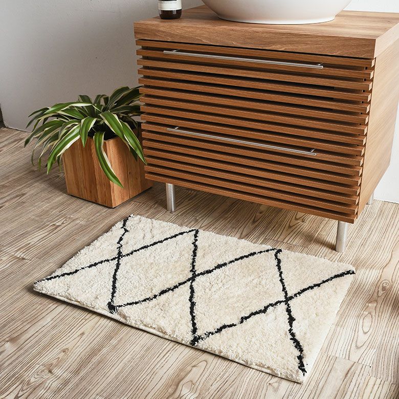 ナチュラルカラーを基調とした温もりある空間に、白と黒のモロッカン柄キッチンマットがほどよいアクセントとして空間を引き締めます。