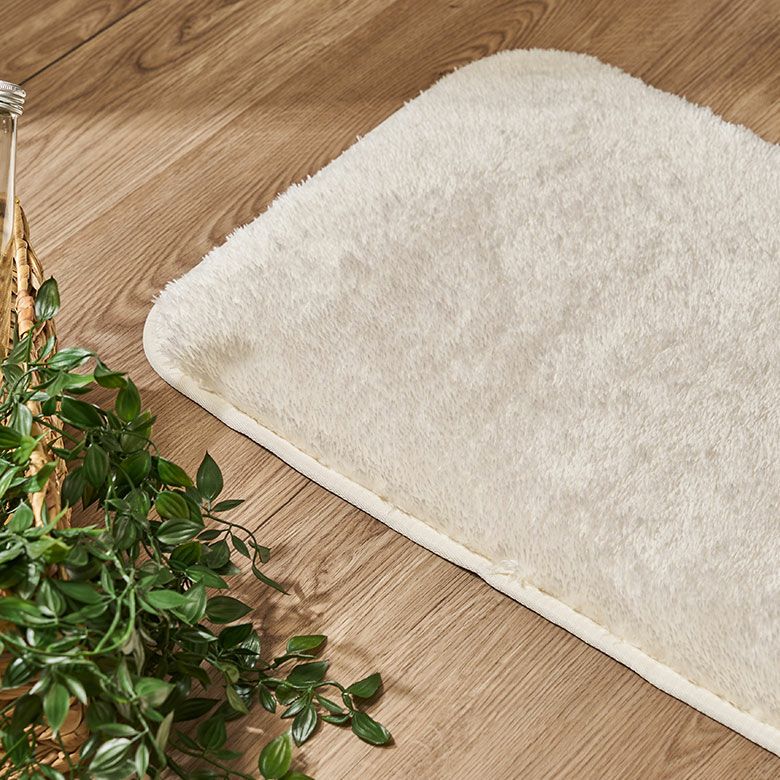 気持ちいい肌触りを追求し毛足18mmの極細マイクロファイバーを使用。柔らかく滑らかな触感で足元を優しく包み込む心地よさ。さらにウレタンを使用しているので床への底付きも軽減。