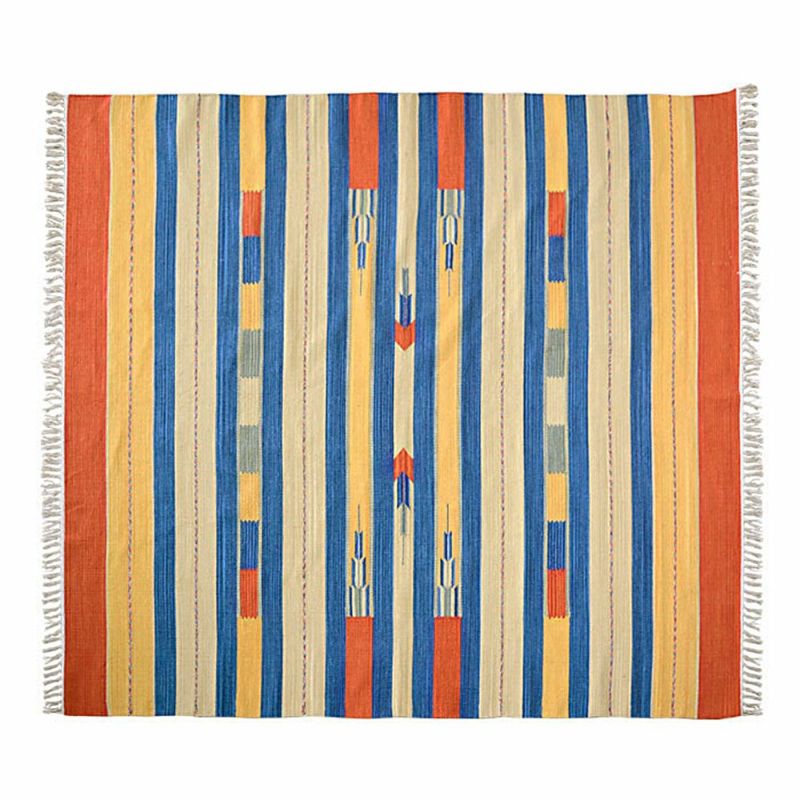 サイドのフリンジや、目を惹く色味がお部屋のアクセントになるキリムラグ。