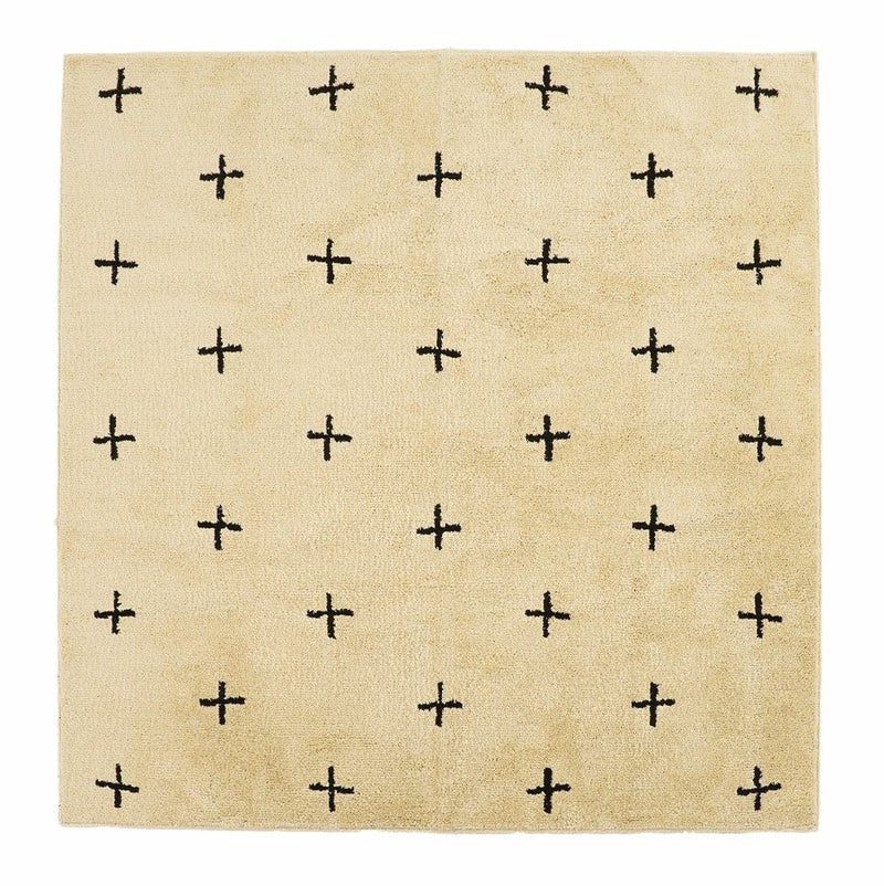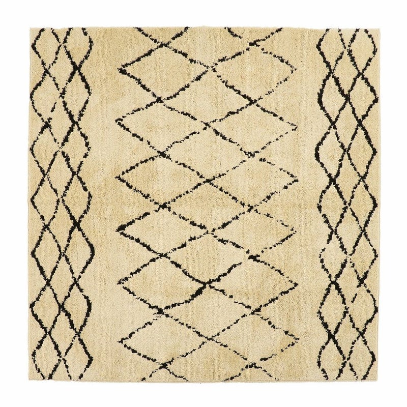 これだけの機能性を持ちながら、しかもおしゃれ!フリーハンドで描かれたような模様で、ベニオワレンラグ風ダイヤ柄とクロス柄の2パターンからお選びいただけます。ベーシックカラーでインテリアに馴染みやすいので、デザインラグ初心者の方にもおすすめです。