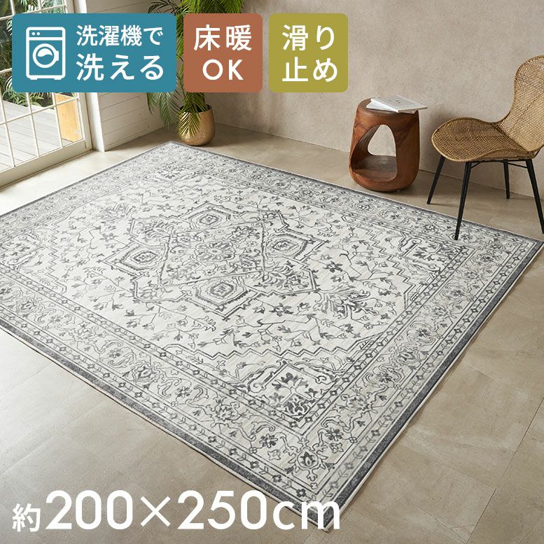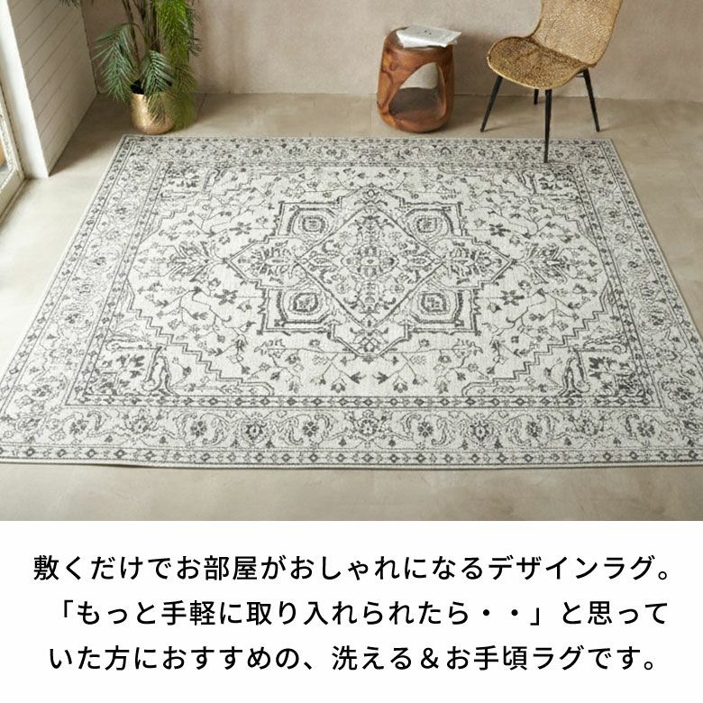 ヴィンテージラグの風合いを、“手軽に・清潔に”楽しめるラグマット。繊細な模様と深みのある色合いを転写プリントでリアルに再現し、本物のような重厚感と高級感を実現しました。