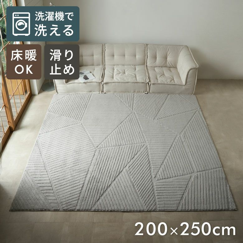 2~3人掛けソファ周りにも使いやすい、ゆったり正方形サイズ。リビングの中心に敷けば、空間にまとまりが生まれ、ちょっとしたくつろぎスペースにも最適です。