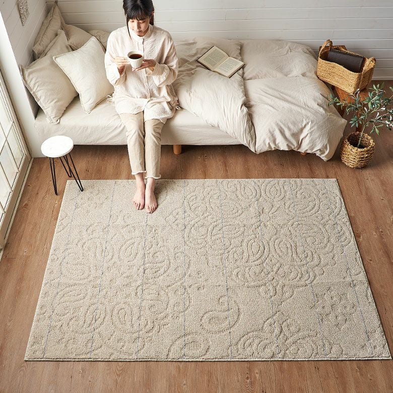 洗濯可 幅185 洗える センターラグ リビング ダイビング 寝室 ベッドルーム 光沢 耐久性 速乾性 ホットカーペット対応 引っ越し 模様替え 一人暮らし ワンルーム ギフト プレゼント ラグ ラグマット 日本製 国産 130×185cm アイボリー グレー 丸洗い可 防ダニ 床暖房対応 遊び毛防止 ウォッシャブル オールシーズン 春 夏 秋 冬 絨毯 じゅうたん マット 敷物 185cm 130×185 おしゃれ 北欧 コンパクト リゾート アラベスク調 インテリア アジアン [96069]