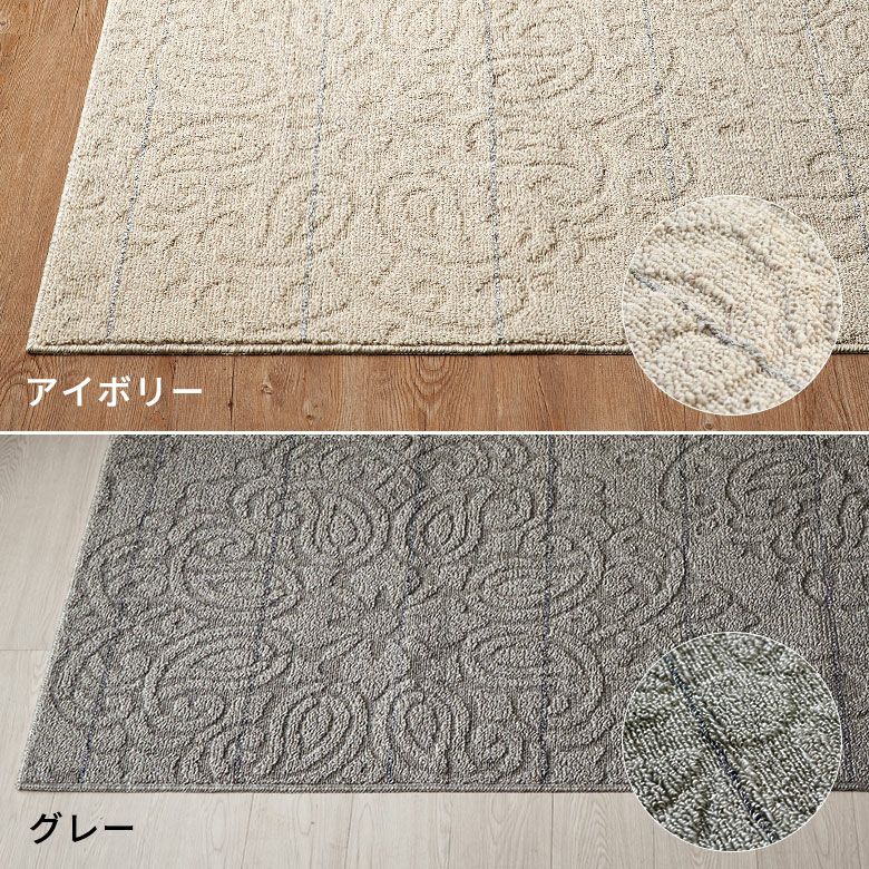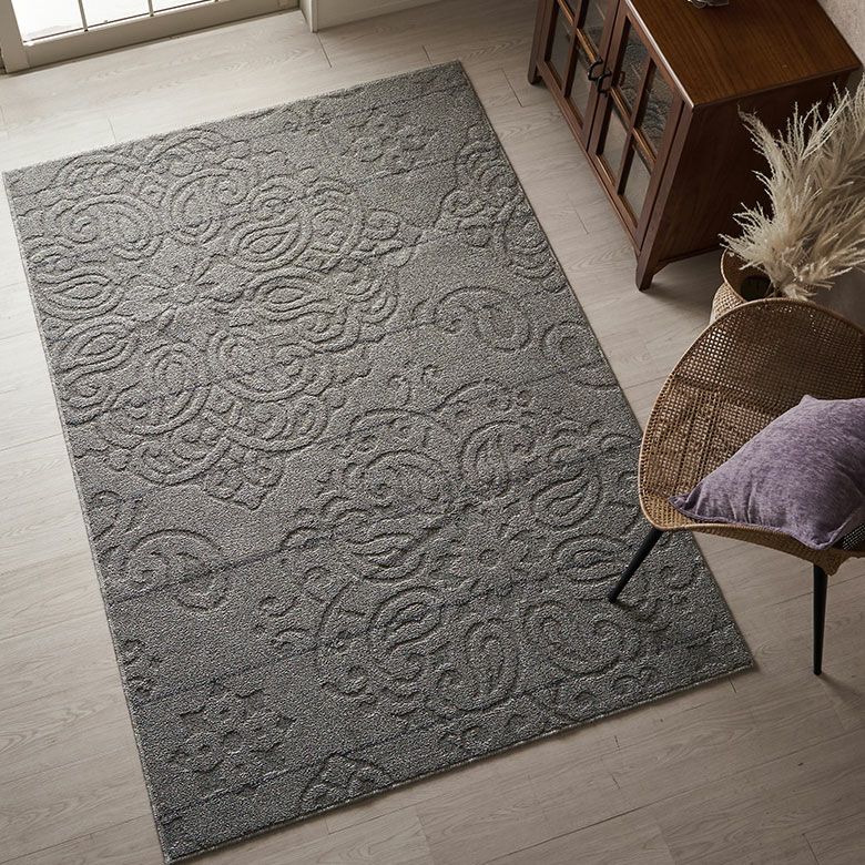 パイルの凹凸で模様が表現されたデザインラグ。