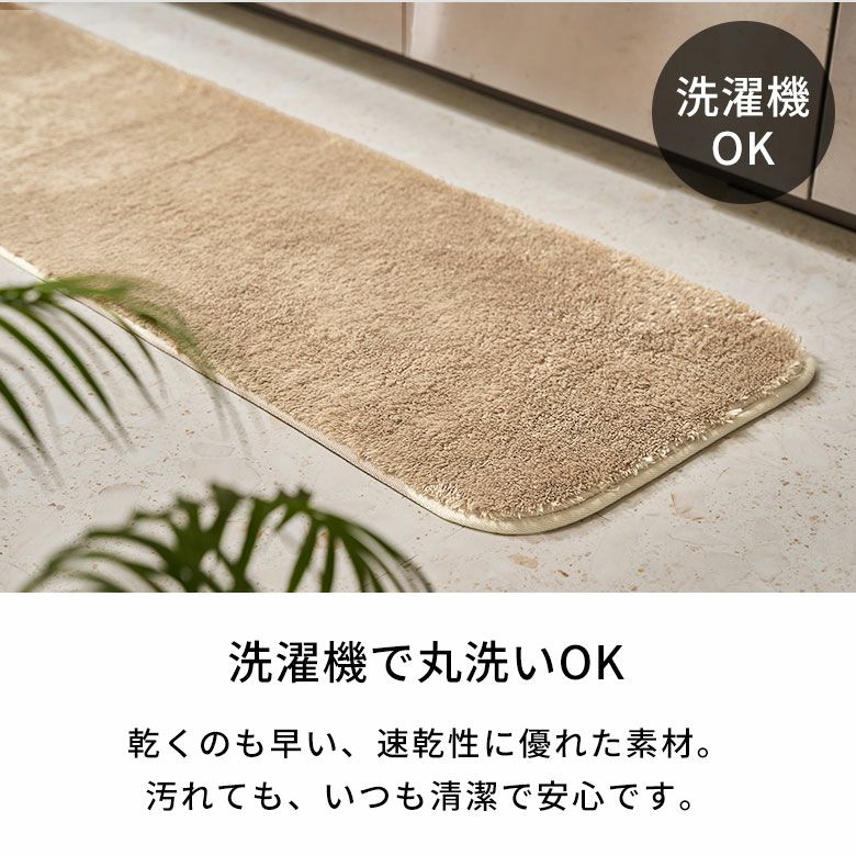特徴:なめらかな肌触りを追求したフラッフィシリーズにキッチンマットサイズが新登場。丸洗いできて清潔さを保てます。