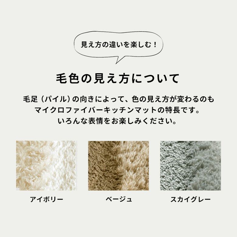 毛足(パイル)の向きによって、色の見え方が変わるのも