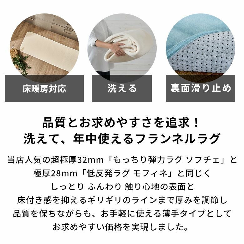 ラグ・カーペット一覧▲表面は同じフランネルラグで、低反発の極厚ラグ