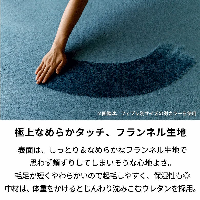 素材:表面は極細のマイクロファイバー糸を使用したフランネル地、中材はウレタン、裏面は滑りにくい加工の施された不織布を使用。