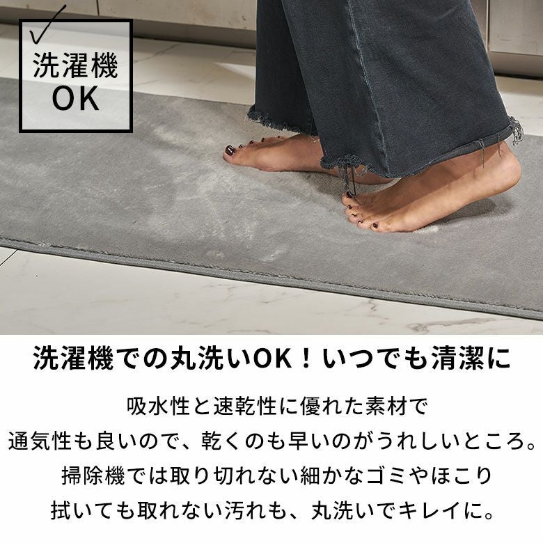 45×180cmのサイズは、玄関や廊下、ベッドサイドなど、細長いスペースにもぴったりです。マイクロファイバー製なので、夏はサラッと快適に、冬は暖かく使用できオールシーズン足元を快適にします。