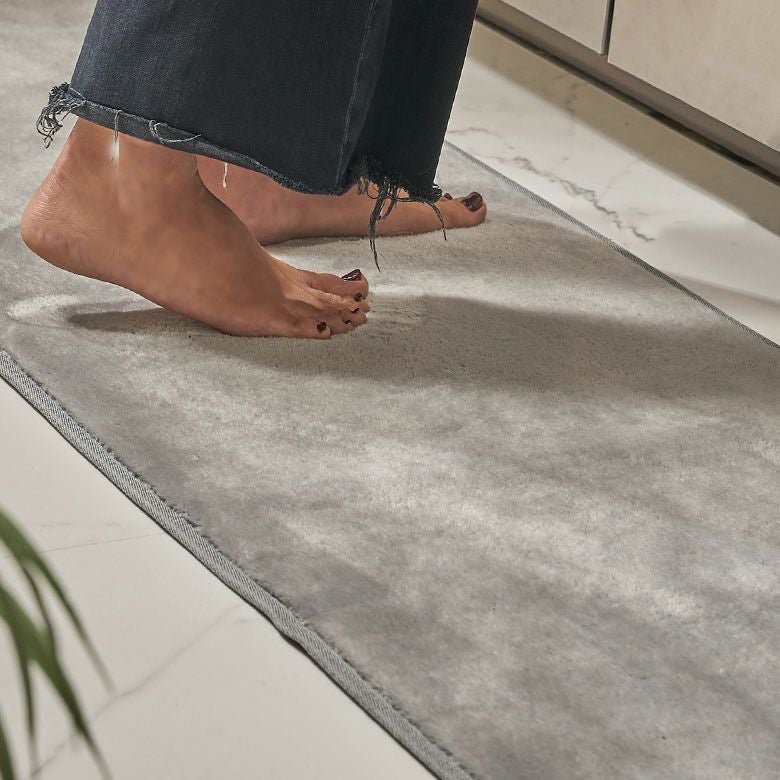 吸湿性と乾燥性に優れたマイクロファイバー素材だから、素足でもふんわりと滑らかな肌触り。床暖房にも対応していて年間を通して快適に使用できます。