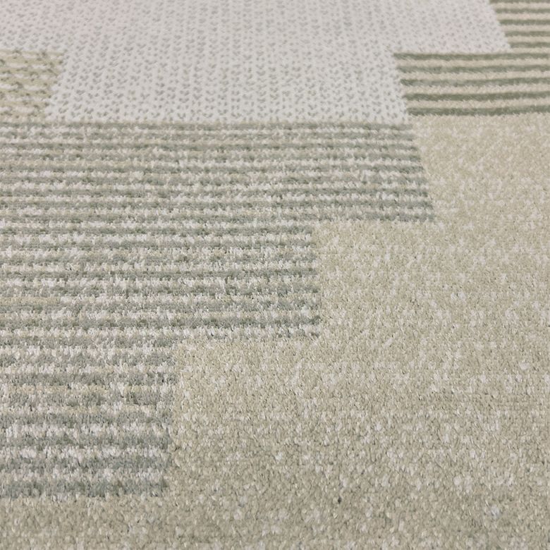 人絹(アーティフィシャルシルク)とも呼ばれる光沢のある上質な見た目と柔らかなタッチ感に加え、光の角度で表情を変えるパイルは精巧なデザイン表現を可能にし、ニュアンスカラーも美しく再現。短い繊維を撚り合わせた紡績糸で自然なふんわり感があり、踏み心地も快適です。使い始めは遊び毛が出ますが、徐々に落ち着きます。さらに、分解が早く環境負荷が少ない点も魅力で、上質さと環境配慮を両立した高級サステナブルラグです。