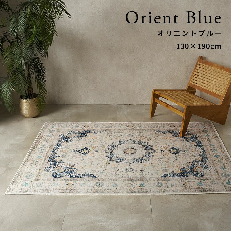 ヴィンテージラグの風合いを、“手軽に・清潔に”楽しめるラグマット。繊細な模様と深みのある色合いを転写プリントでリアルに再現し、本物のような重厚感と高級感を実現しました。
