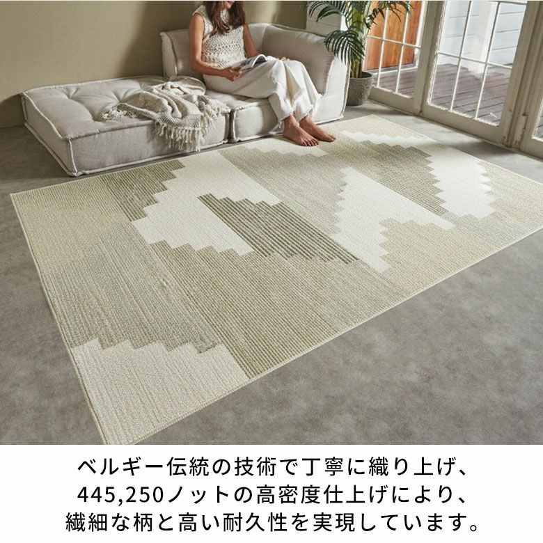 ベルギーラグは、中世から続く織物文化と最新の機械織技術が融合した上質なラグです。ベルギーならではの繊細な柄表現とニュアンスのある美しいカラーが生み出す上品なデザインが魅力。