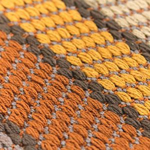 インド綿ラグといえば平織の薄手なラグが一般的ですが、ループさせたパイルを織ったラグなので、