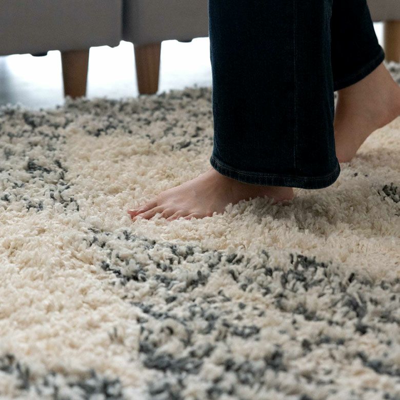 長い毛足のシャギーラグは、 フカフカなのにサラッとした触り心地で、冬は暖かく夏はサラサラ。