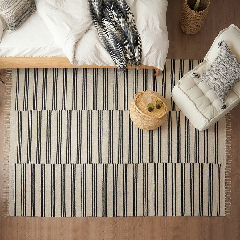 じゅうたん 敷物 モノトーンラグ 白黒ストライプ シンプル ラグ モノトーン ボーダー ストライプ 幾何柄 インド製 コットン100% 長方形 約 200×250cm 約 3畳 ラグ ラグマット 夏用 カーペット コットンラグ フリンジ付き リビング ダイニング インテリア おしゃれ 北欧 綿100% アジアン 雑貨 BOHO 海外インテリア [34529]