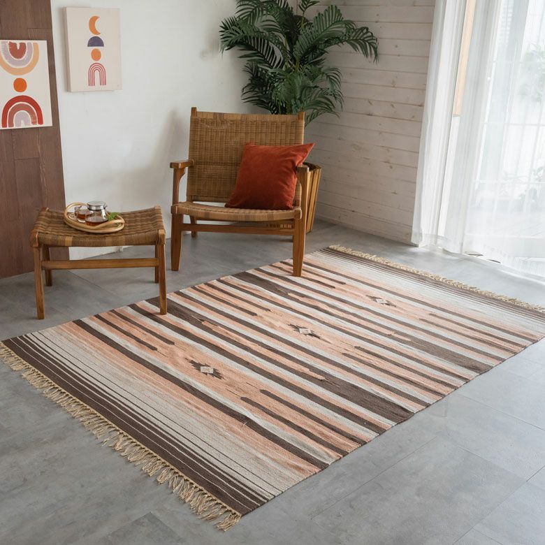 コーナーラグ 手織り 屋内用 オールシーズン 春 夏 秋 冬 風水 玄関マット フリンジ モノトーン ボーダー ストライプ インド製 コットン100% 約 50×80cm ラグ ラグマット 夏用 コットンラグ 室内 キリム風ラグ アクセントラグ アウトドア キャンプ リビング 寝室 おしゃれ 北欧 綿100% アジアン 雑貨 BOHO モロッカン モロッコ [34522]