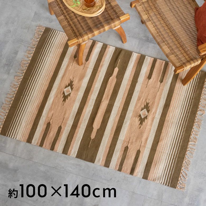 大注目のキリム調ラグ☆お部屋の主役インテリアになるエスニックラグ キリムラグ コットン 100×140cm Iタイプ コットンラグ マット キリム インド綿 オルテガ エスニック ネイティブ 民族 カーペット ラグマット 絨毯 じゅうたん アジアンラグ アジアン らぐ おしゃれ アジアン雑貨 男前 オシャレ インテリア [31950]