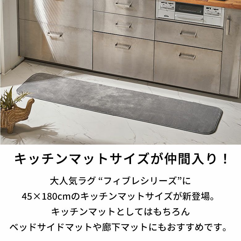 キッチンに最適なロングマットタイプが新登場!洗濯機OKでいつでも清潔、45×180cmで細長いスペースにもピッタリ。 【フィブレラグ】ウォッシャブル&裏面滑り止め付きマイクロファイバー製のなめらかフランネルラグマット[hc800-45x180]