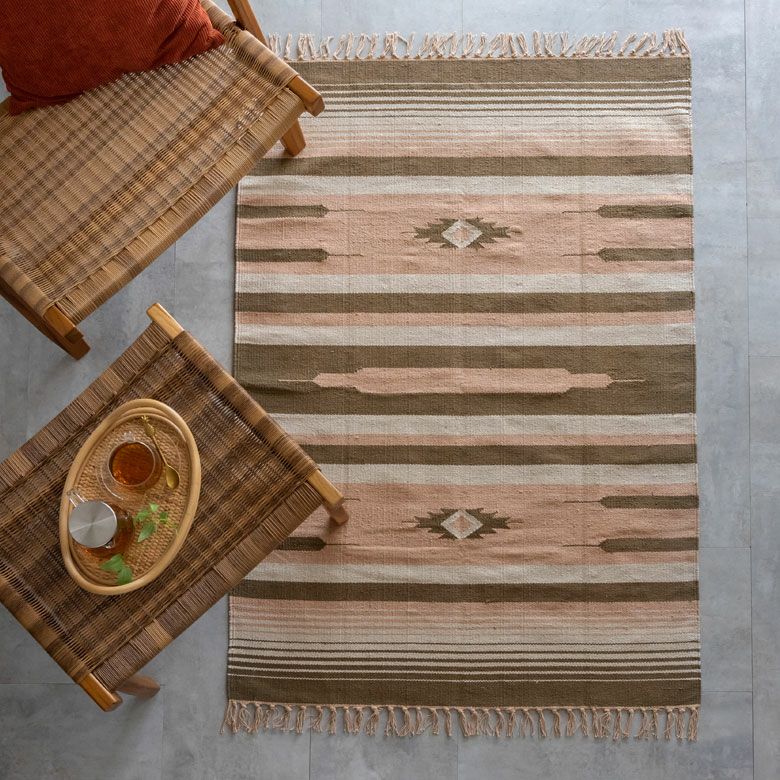 大注目のキリム調ラグ☆お部屋の主役インテリアになるエスニックラグ キリムラグ コットン 100×140cm Iタイプ コットンラグ マット キリム インド綿 オルテガ エスニック ネイティブ 民族 カーペット ラグマット 絨毯 じゅうたん アジアンラグ アジアン らぐ おしゃれ アジアン雑貨 男前 オシャレ インテリア [31950]