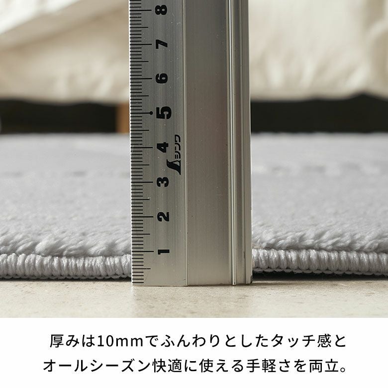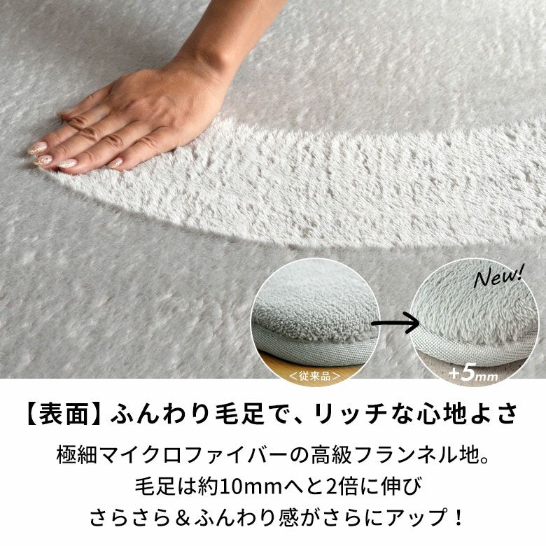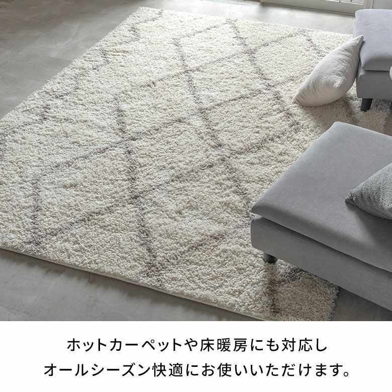 長い毛足のシャギーラグは、 フカフカなのにサラッとした触り心地で、冬は暖かく夏はサラサラ。