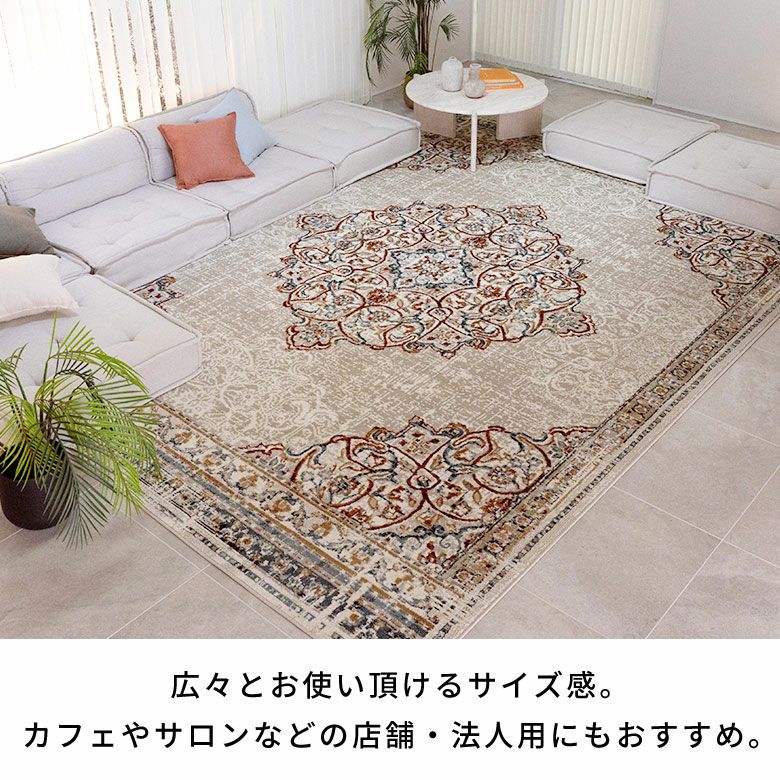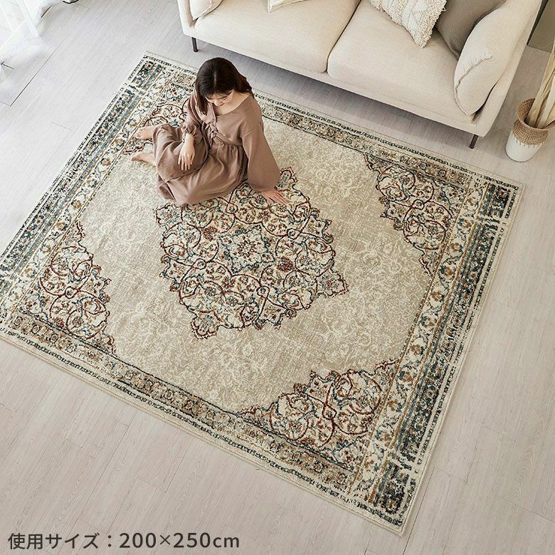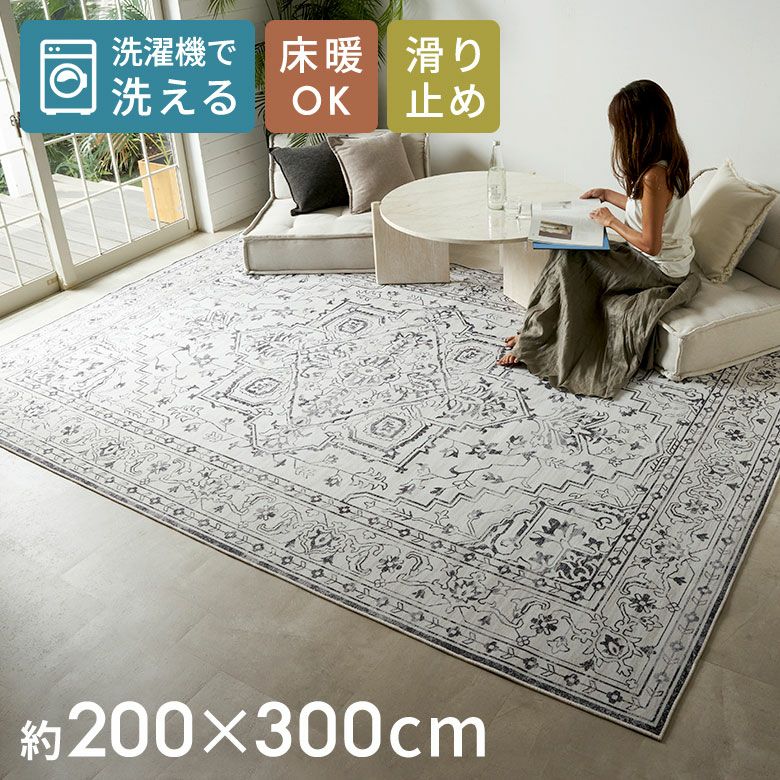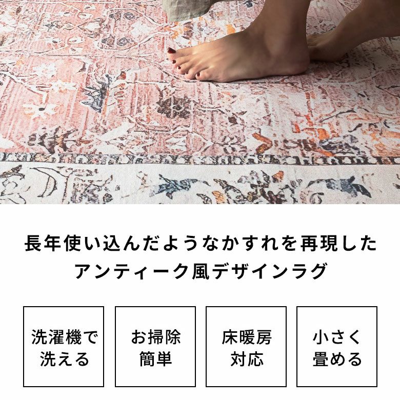 ヴィンテージラグの風合いを“手軽に・清潔に”楽しめる ペルシャ絨毯風ウォッシャブルラグマット!リビングをおしゃれに彩るオリエンタル柄 床暖房対応で年中快適 滑り止め付き 長年使いこんだようなかすれを再現したアンティーク風デザインのおしゃれなラグカーペット/約200x300cm 洗濯機で丸洗いOK 薄手で簡単お掃除&一年中使える 軽くて畳めてラクラク収納ラグマット [84402-c]