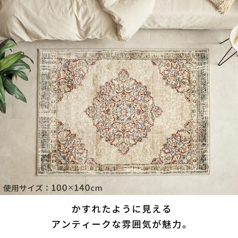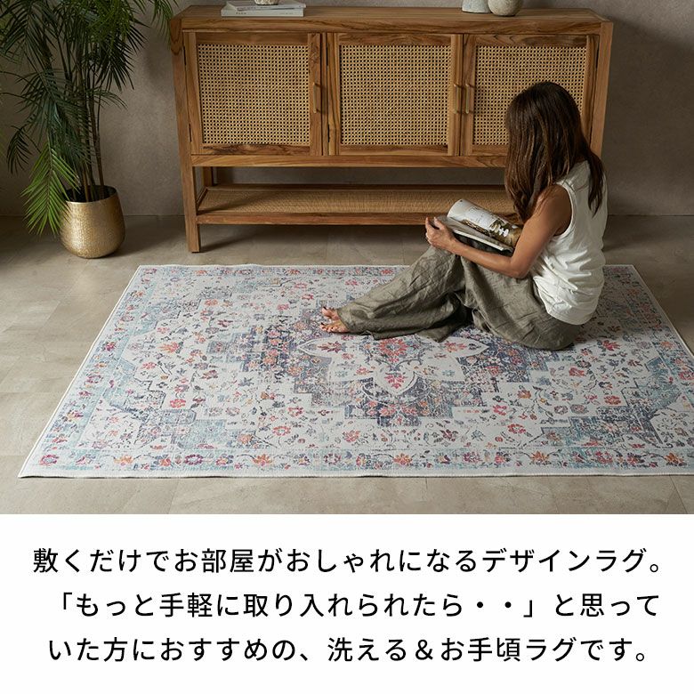 ヴィンテージラグの風合いを“手軽に・清潔に”楽しめる ペルシャ絨毯風ウォッシャブルラグマット!リビングをおしゃれに彩るオリエンタル柄 床暖房対応で年中快適 滑り止め付き 長年使いこんだようなかすれを再現したアンティーク風デザインのおしゃれなラグカーペット/約130x190cm 洗濯機で丸洗いOK 薄手で簡単お掃除&一年中使える 軽くて畳めてラクラク収納ラグマット [84400-c]