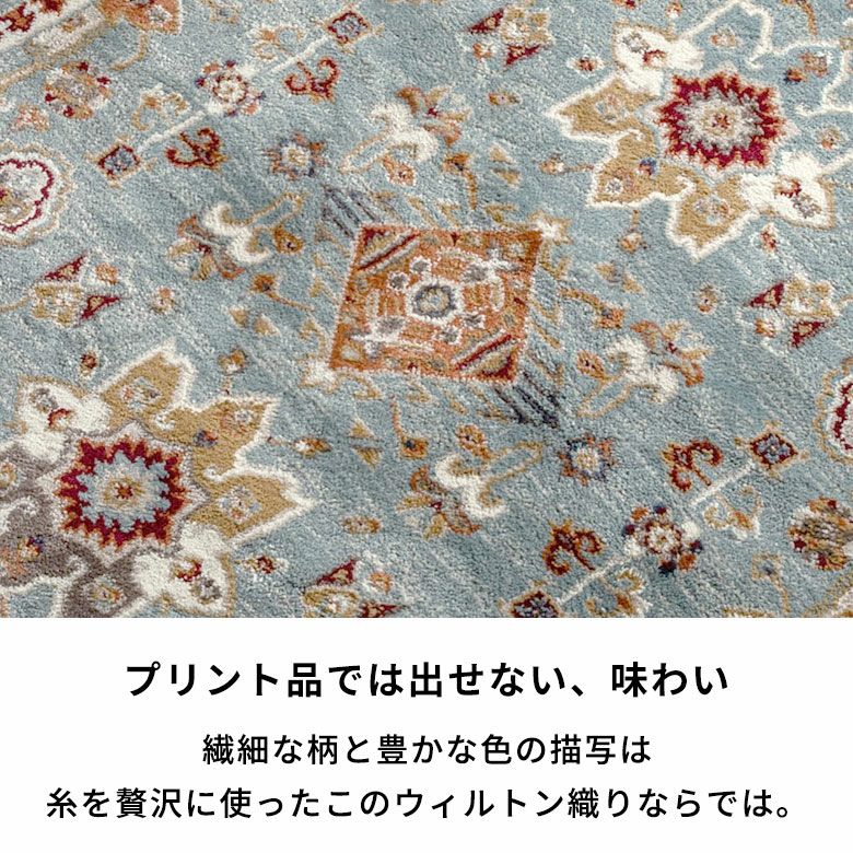 繊細で豊かな色の描写は、糸を贅沢に使用したウィルトン織りならでは。