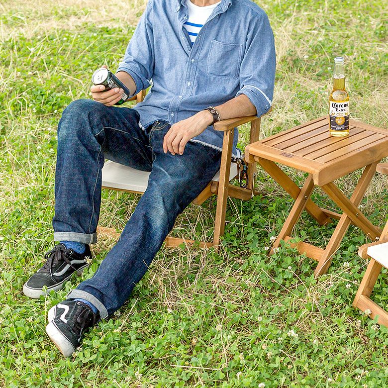 天然木から作られたこのチェアでより自然と近くなった気分に♪使わないときもスリムに収納できるので邪魔になりません!
