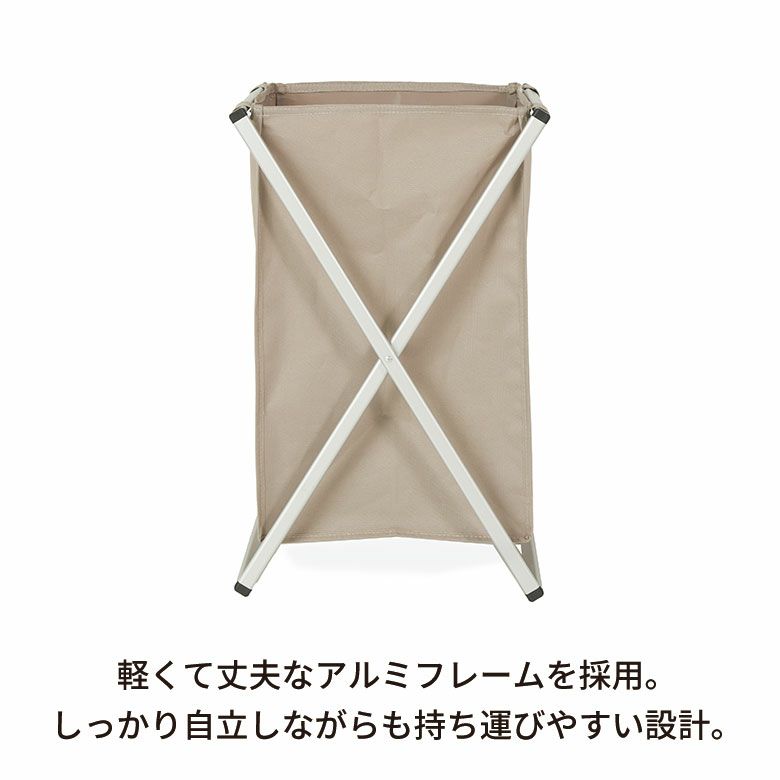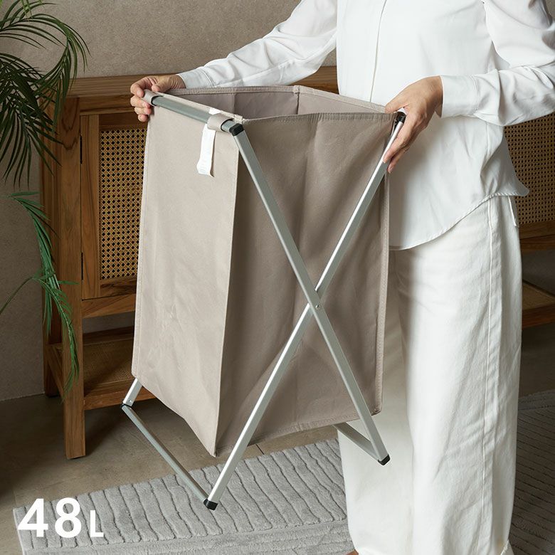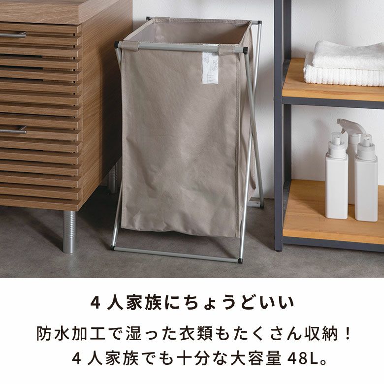 48Lの大容量。45Lのゴミ袋がぴったり収まるサイズ 防水加工で湿った衣類もたくさん収納!4人家族でも十分な大容量48Lアルミフレームでしっかり自立する折りたたみ式ランドリーバスケット [67208]