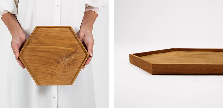 幾何学の端正さと自然素材の温もりを融合したミニマルな木製トレイ。