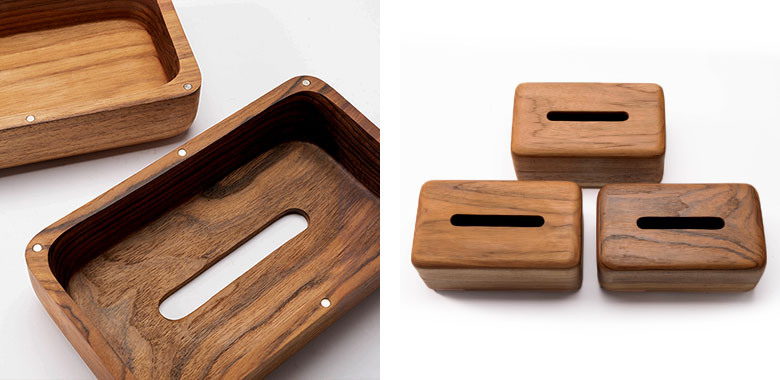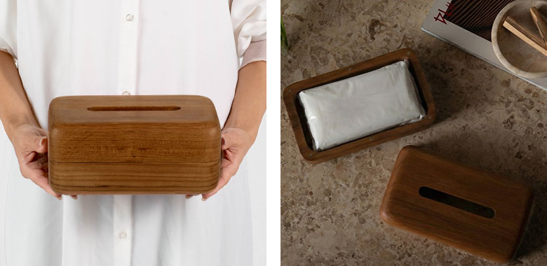 柔らかな曲線とぬくもりを感じられる木目が印象的なティッシュケース。