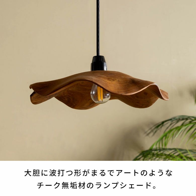 大胆に波打つ形がまるでアートのような木製ランプシェード。